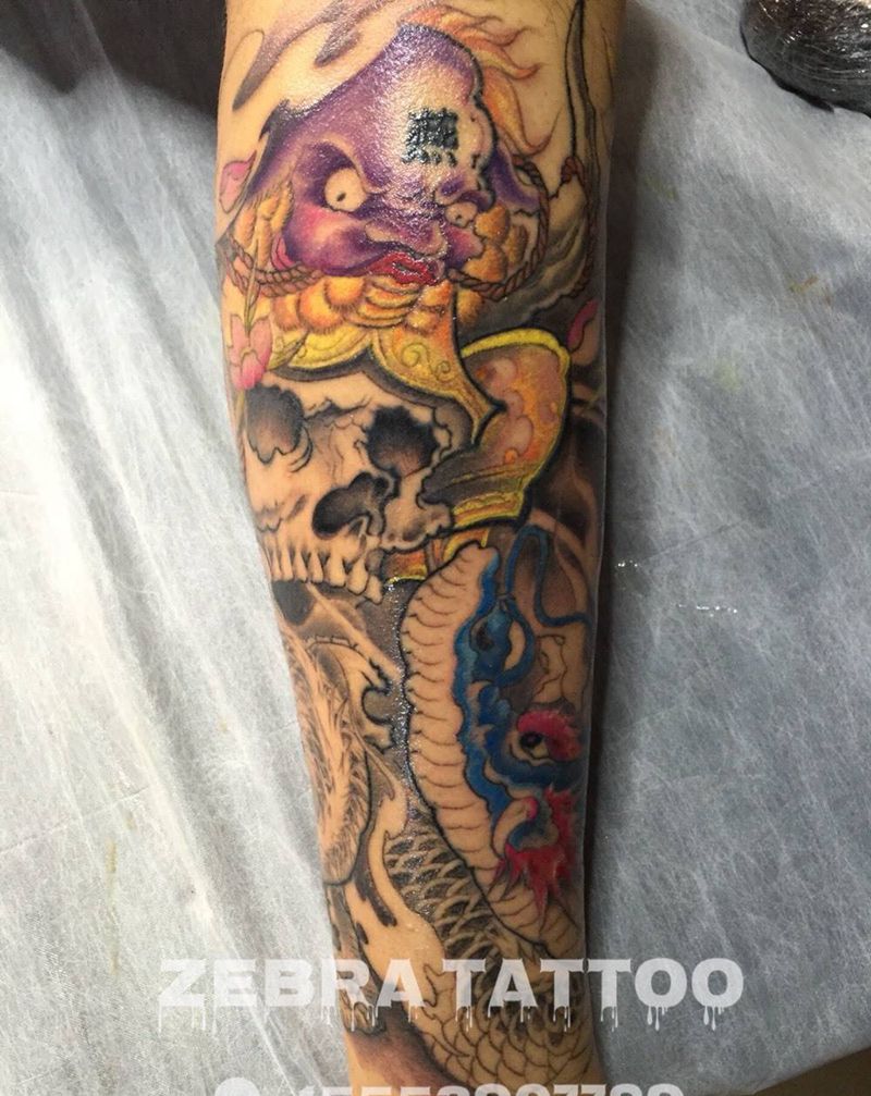 • T网红王老大花腿龙纹身图片_腿部新传统纹身图案