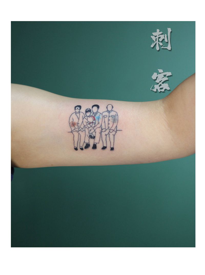 当前位置: 首页 >山东省德州市纹身店-刺客纹身工作室纹身图案>极简风全家福纹身图片_手臂纹身图案