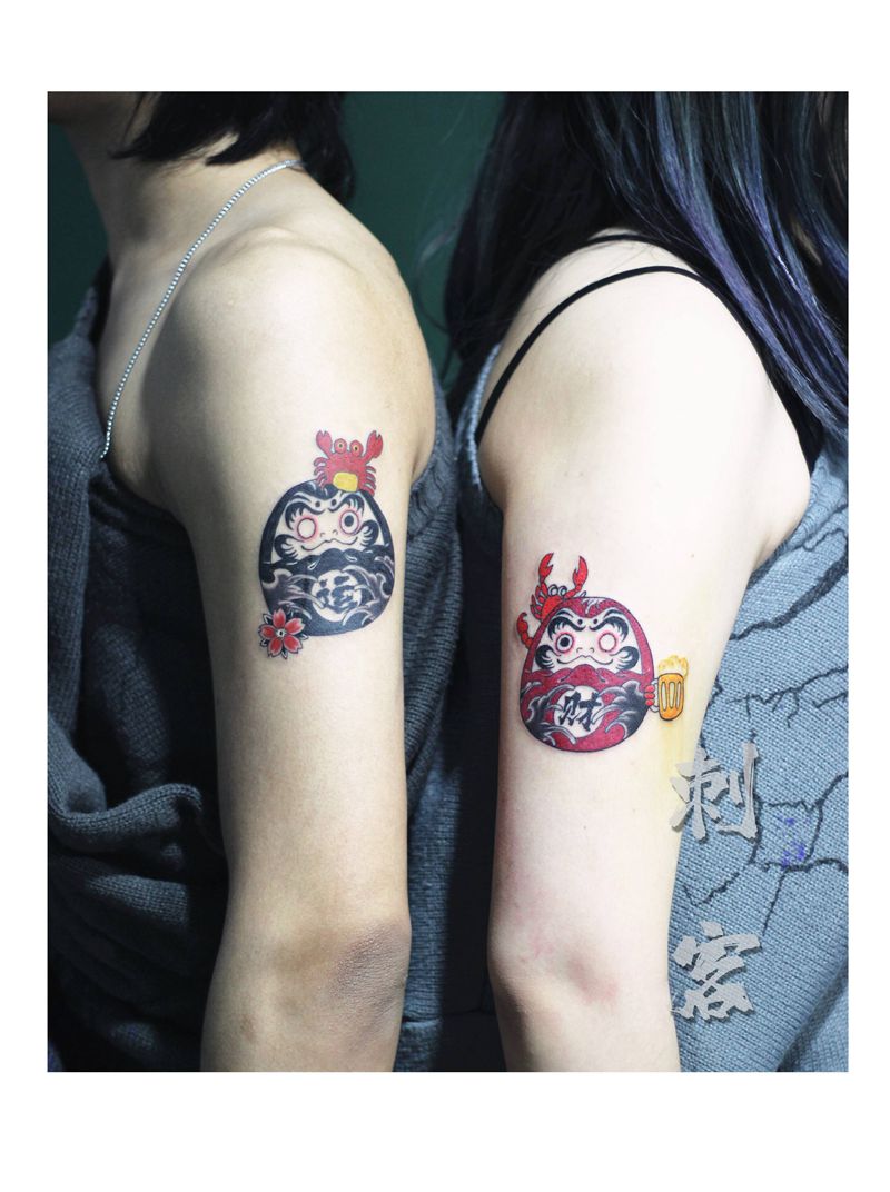 达摩情侣纹身纹身图片_手臂纹身图案