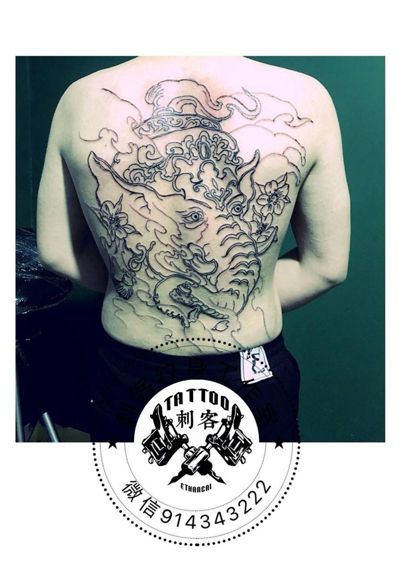 当前位置: 首页 >山东省德州市纹身店-刺客纹身工作室纹身图案>象神线条纹身图片