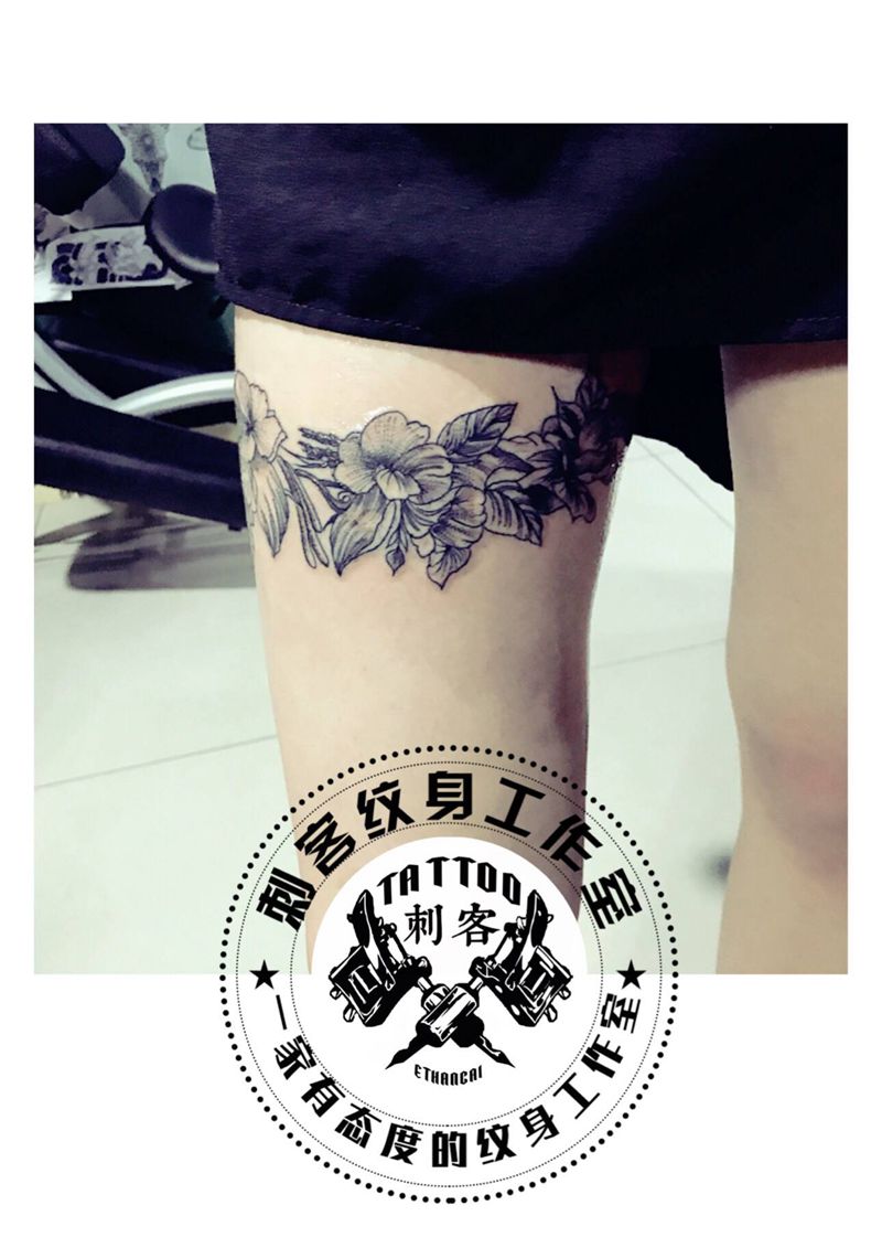当前位置: 首页 >山东省德州市纹身店-刺客纹身工作室纹身图案>性感素花腿环纹身图片_腿部纹身图案