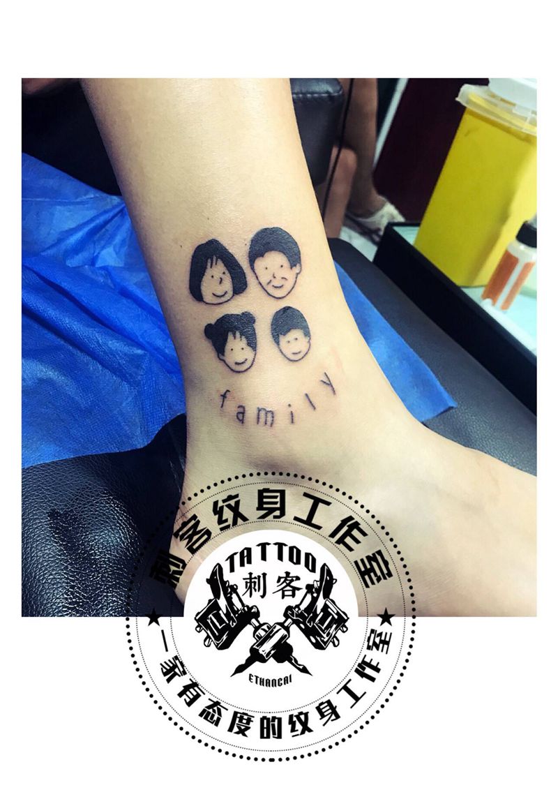 当前位置: 首页 >山东省德州市纹身店-刺客纹身工作室纹身图案>一家四口极简风纹身图片_脚部纹身图案