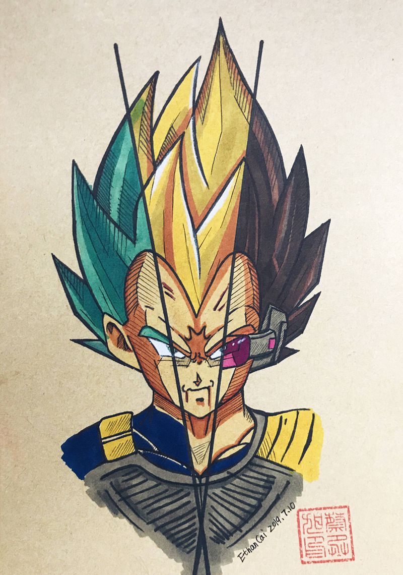 手绘超级赛亚人王子——贝吉塔。纹身图片_水彩纹身图案