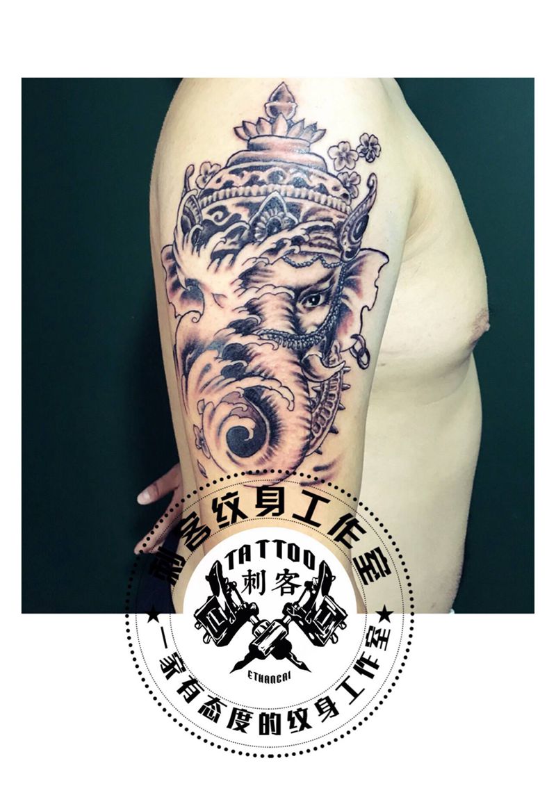 当前位置: 首页 >山东省德州市纹身店-刺客纹身工作室纹身图案>浪花象神纹身图片_手臂纹身图案