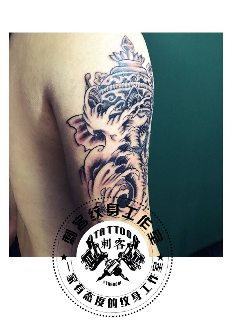当前位置: 首页 >山东省德州市纹身店-刺客纹身工作室纹身图案>浪花象神纹身图片_手臂纹身图案