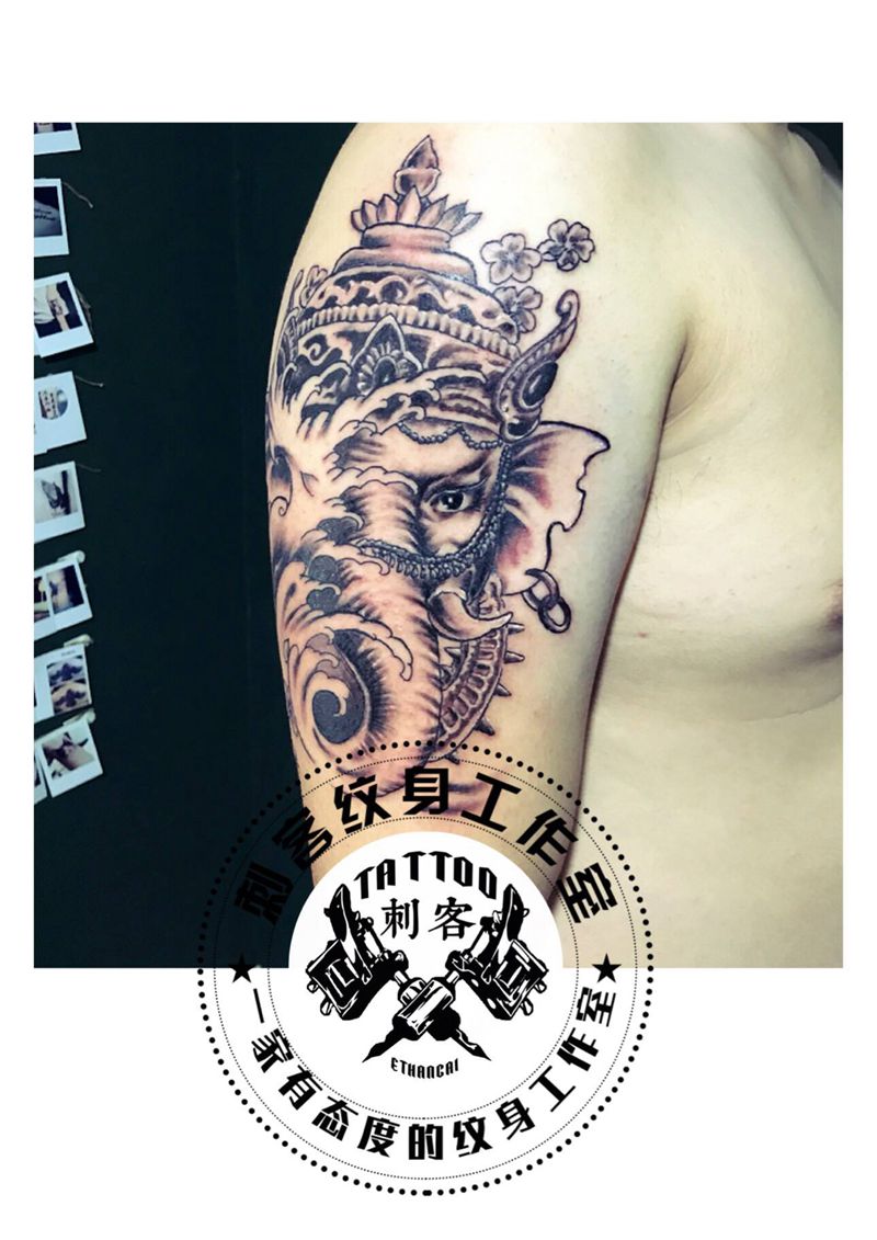 当前位置: 首页 >山东省德州市纹身店-刺客纹身工作室纹身图案>浪花象神纹身图片_手臂纹身图案