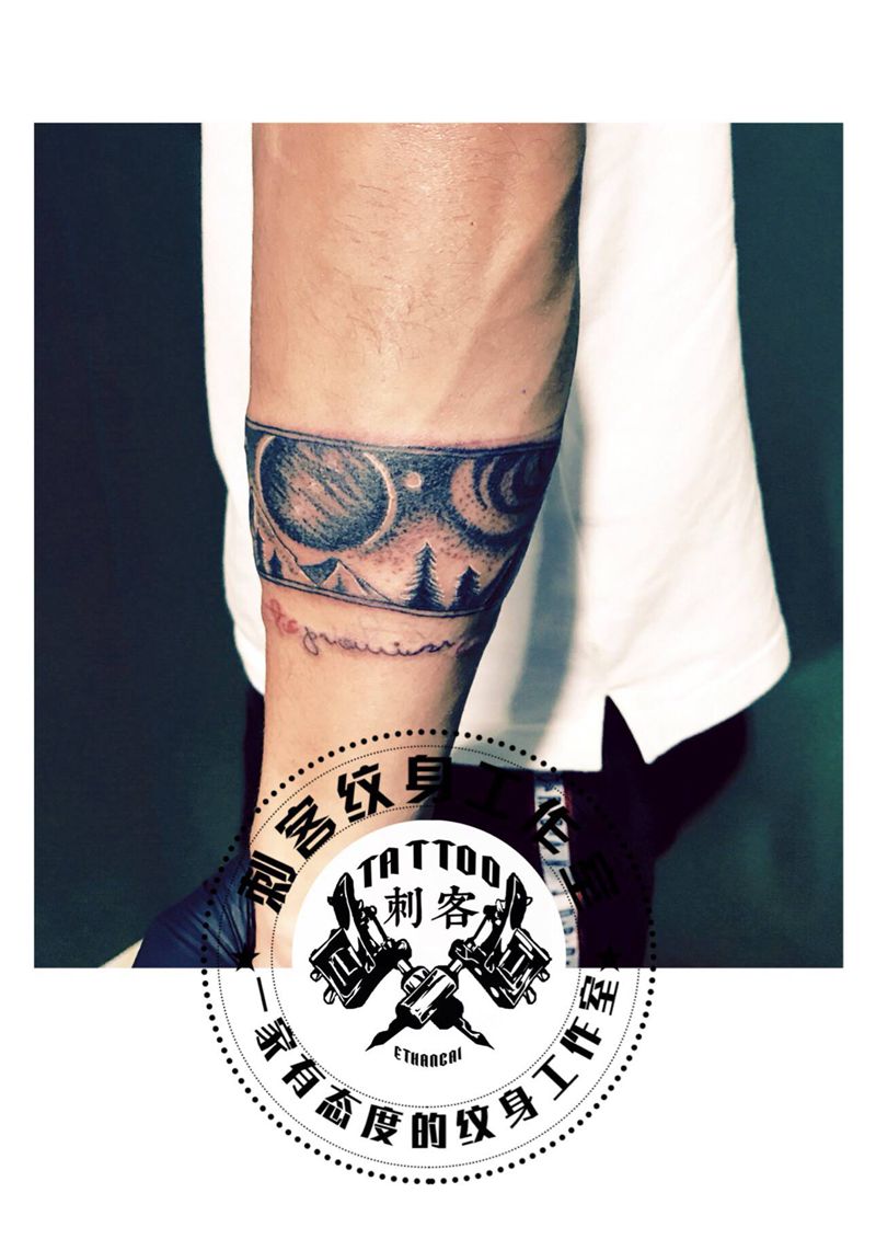 当前位置: 首页 >山东省德州市纹身店-刺客纹身工作室纹身图案>银河系星球森林大山手环纹身图片_点刺纹身图案