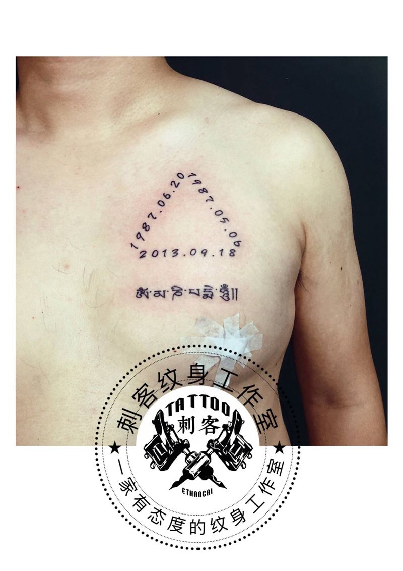 当前位置: 首页 >山东省德州市纹身店-刺客纹身工作室纹身图案>六字箴言与生日纹身图片_胸部纹身图案