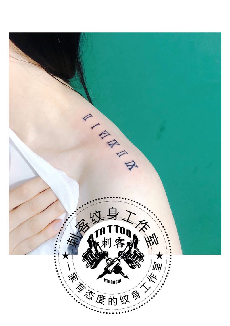 当前位置: 首页 >山东省德州市纹身店-刺客纹身工作室纹身图案>罗马数字生日纹身图片_肩部纹身图案