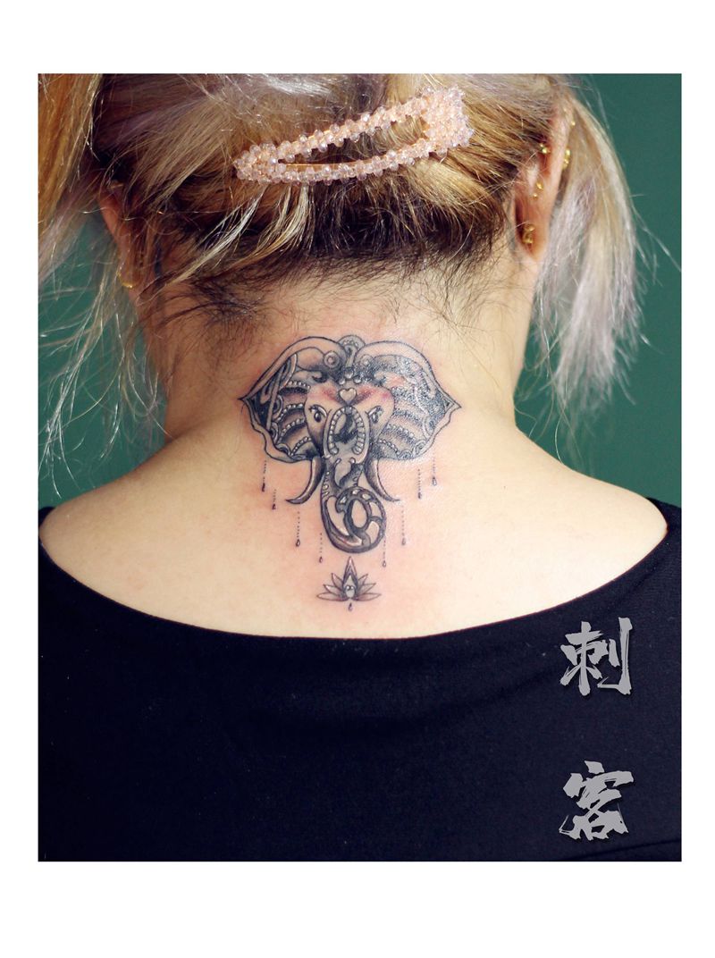 当前位置: 首页 >山东省德州市纹身店-刺客纹身工作室纹身图案>大象遮盖图腾纹身图片_颈部纹身图案