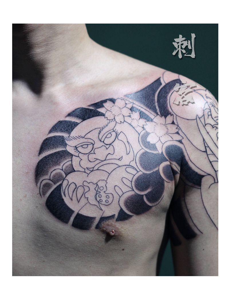 当前位置: 首页 >山东省德州市纹身店-刺客纹身工作室纹身图案>半甲未完成纹身图片_胸部纹身图案