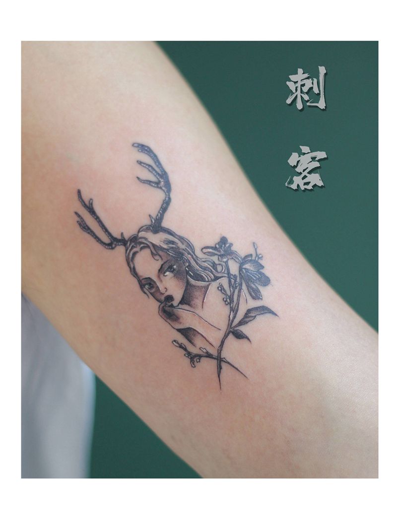 当前位置: 首页 >山东省德州市纹身店-刺客纹身工作室纹身图案>鹿少女纹身图片_手臂纹身图案