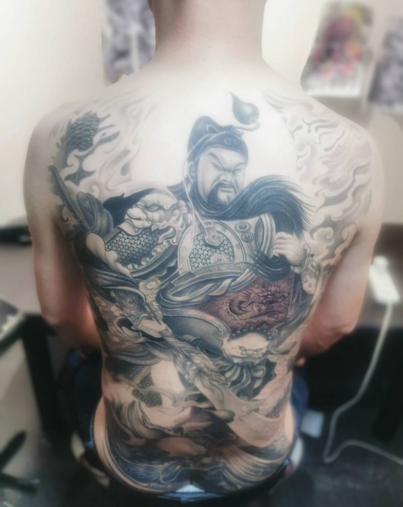 关公纹身图片_背部新传统纹身图案