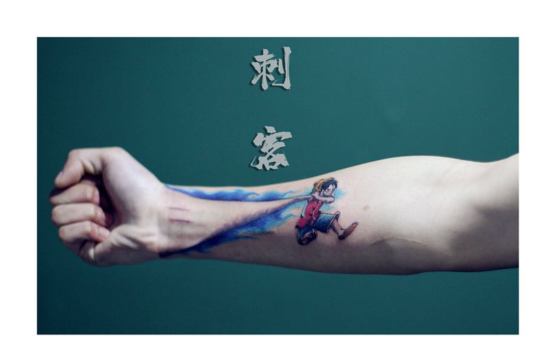 当前位置: 首页 >山东省德州市纹身店-刺客纹身工作室纹身图案>海贼王路飞纹身图片_手臂纹身图案