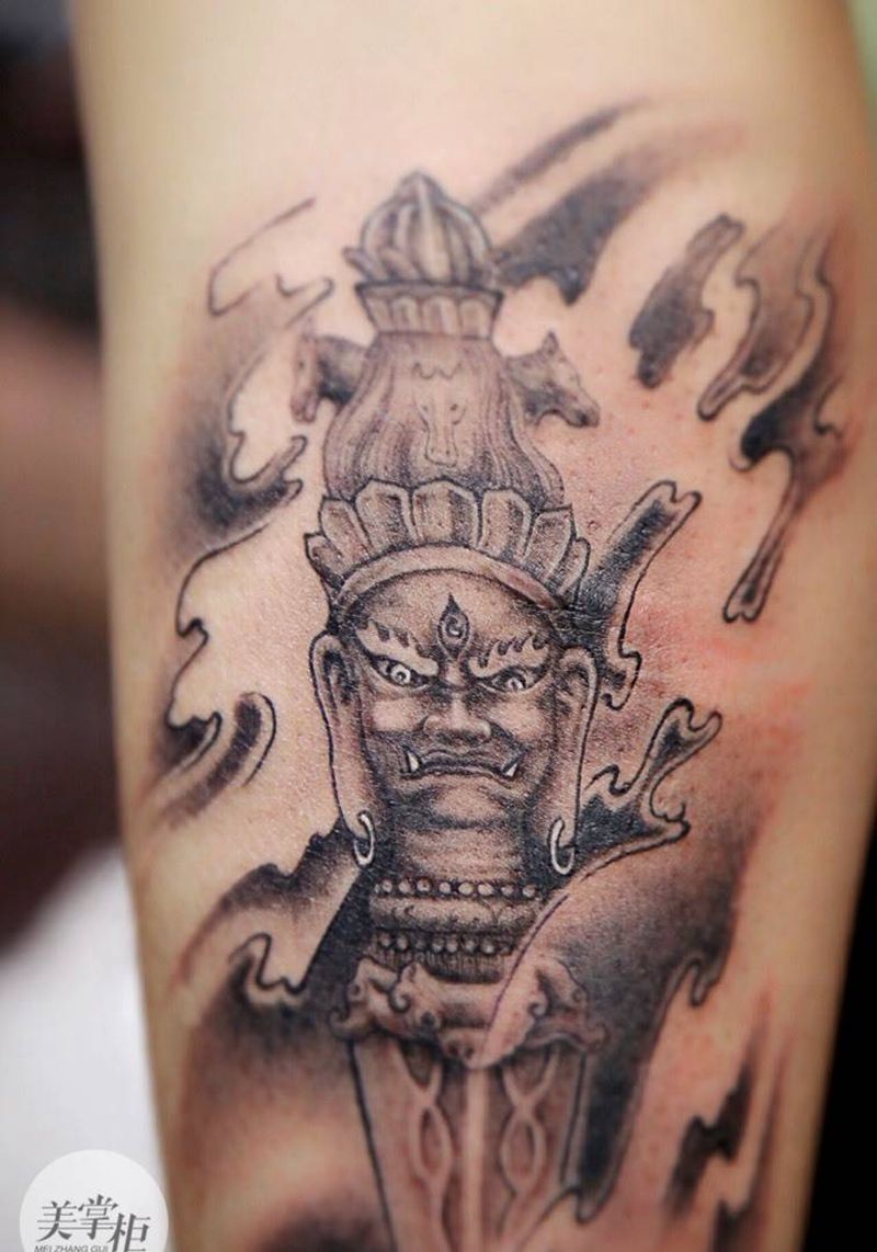 降魔杵纹身图片_宗教传统腿部纹身图案