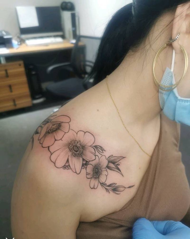 素花纹身图片_肩部几何点刺纹身图案