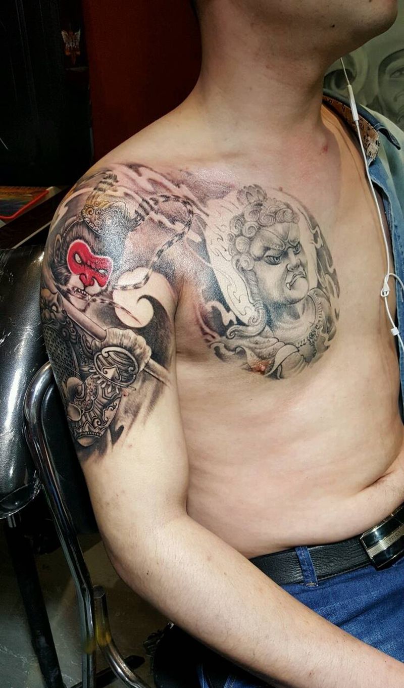 半甲斗战胜佛纹身图片_肩部胸部手臂传统人物鬼神宗教聊城烈火风格成品纹身图案