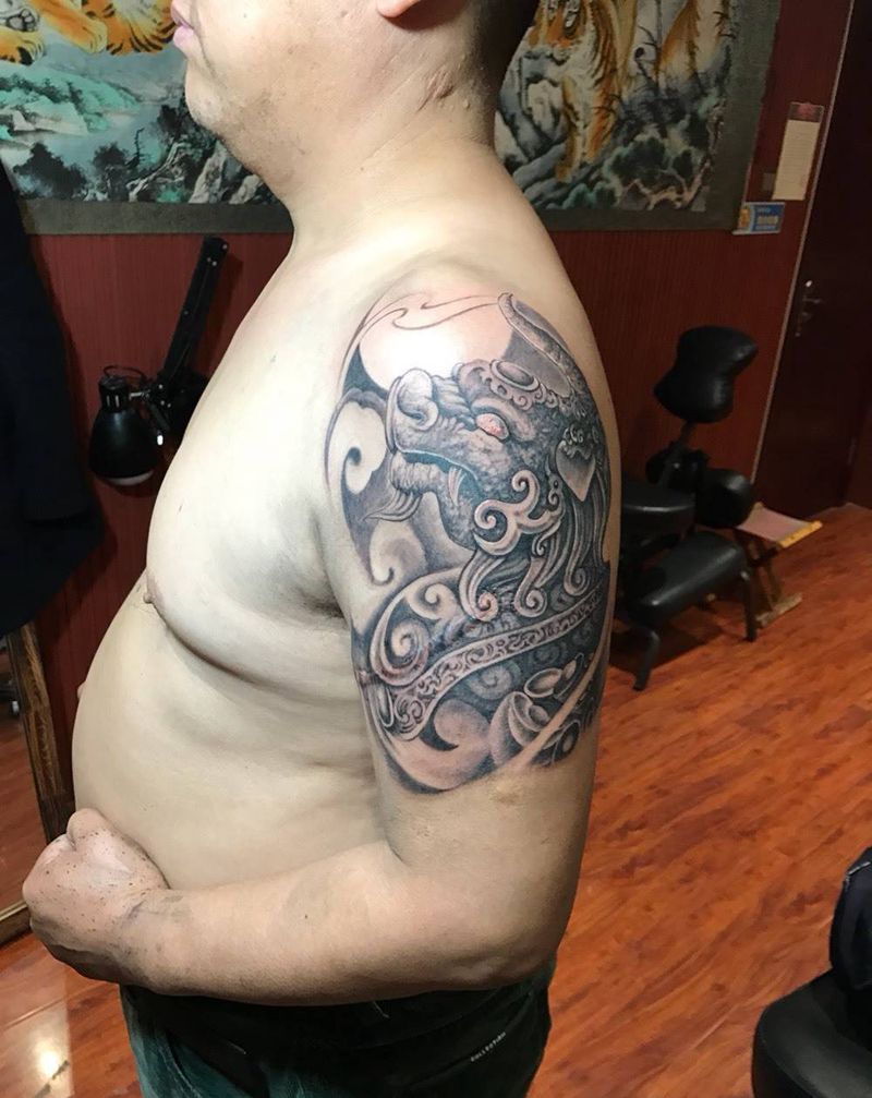 当前位置: 首页 >山东省聊城市纹身店-皇朝刺青旗舰店纹身图案>烈火貔貅纹身图片_成品手臂传统动物宗教烈火风格纹身图案