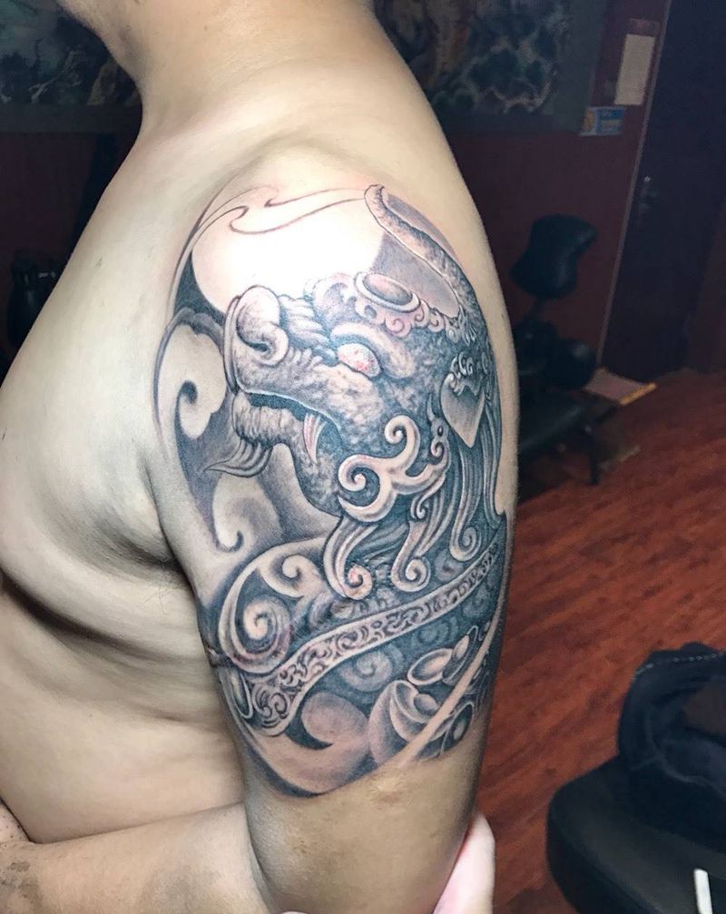 当前位置: 首页 >山东省聊城市纹身店-皇朝刺青旗舰店纹身图案>烈火貔貅纹身图片_成品手臂传统动物宗教烈火风格纹身图案