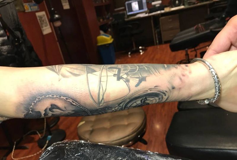 当前位置: 首页 >山东省聊城市纹身店-皇朝刺青旗舰店纹身图案>包小臂写实。纹身图片_成品手臂写实静物鬼神原创纹身图案
