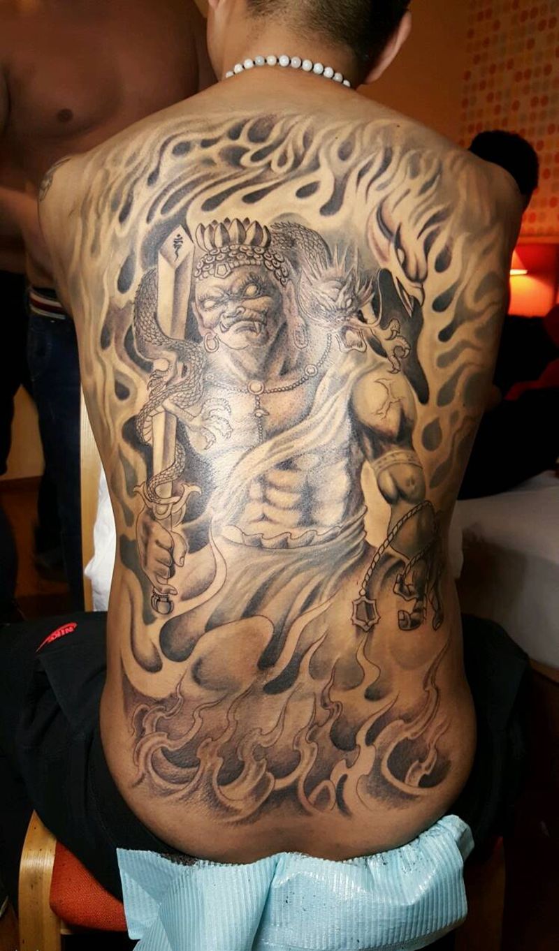 当前位置: 首页 >山东省聊城市纹身店-皇朝刺青旗舰店纹身图案>大背纹身图片_背部传统人物鬼神宗教烈火风格成品纹身图案