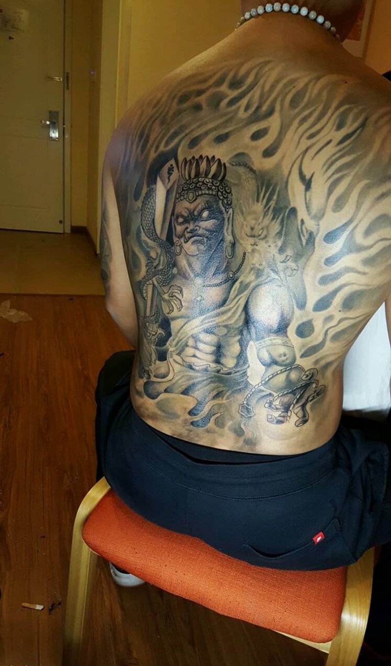 当前位置: 首页 >山东省聊城市纹身店-皇朝刺青旗舰店纹身图案>大背纹身图片_背部传统人物鬼神宗教烈火风格成品纹身图案