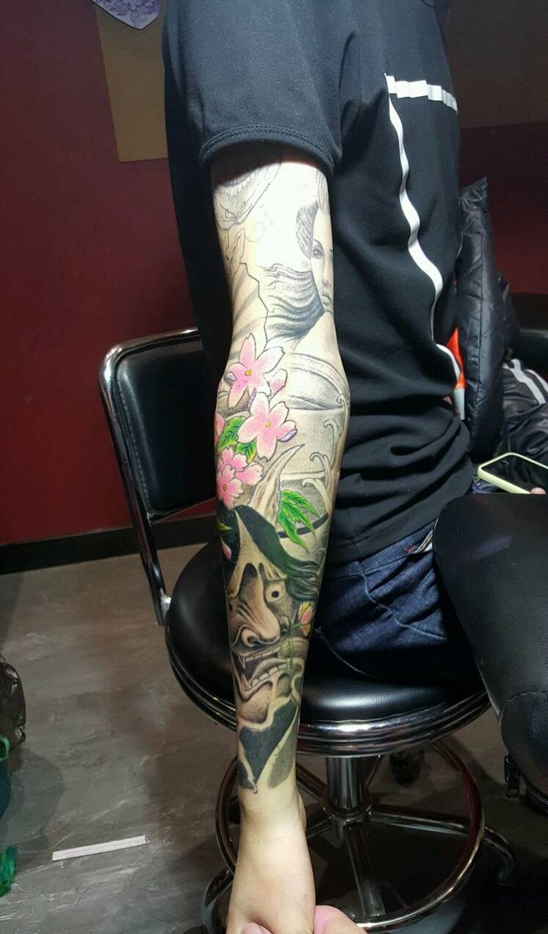 当前位置: 首页 >山东省聊城市纹身店-皇朝刺青旗舰店纹身图案>花臂纹身图片_手臂传统人物鬼神宗教聊城烈火风格成品纹身图案