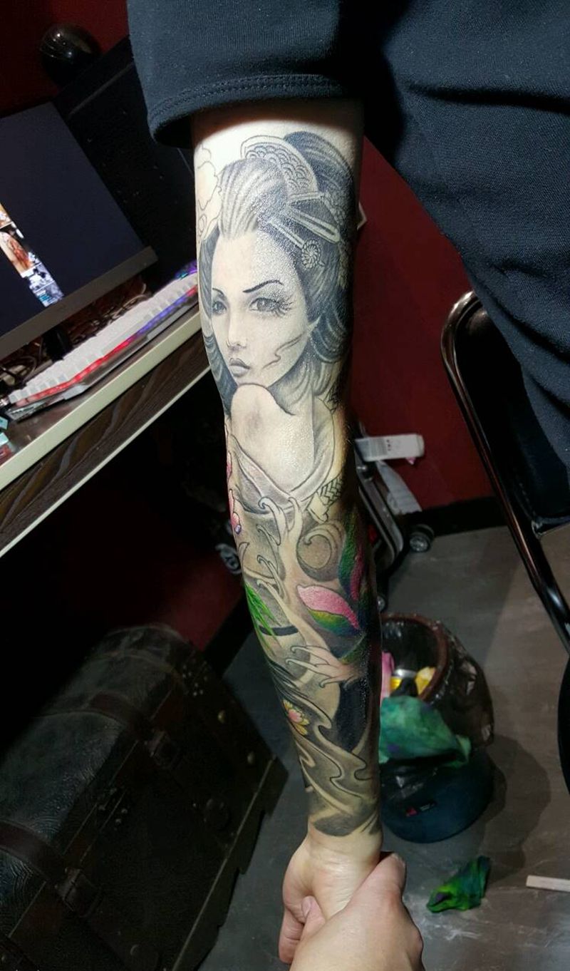 当前位置: 首页 >山东省聊城市纹身店-皇朝刺青旗舰店纹身图案>花臂纹身图片_手臂传统人物鬼神宗教聊城烈火风格成品纹身图案