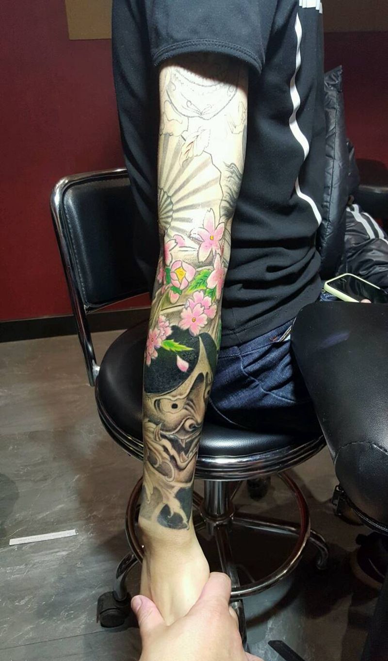 当前位置: 首页 >山东省聊城市纹身店-皇朝刺青旗舰店纹身图案>花臂纹身图片_手臂传统人物鬼神宗教聊城烈火风格成品纹身图案