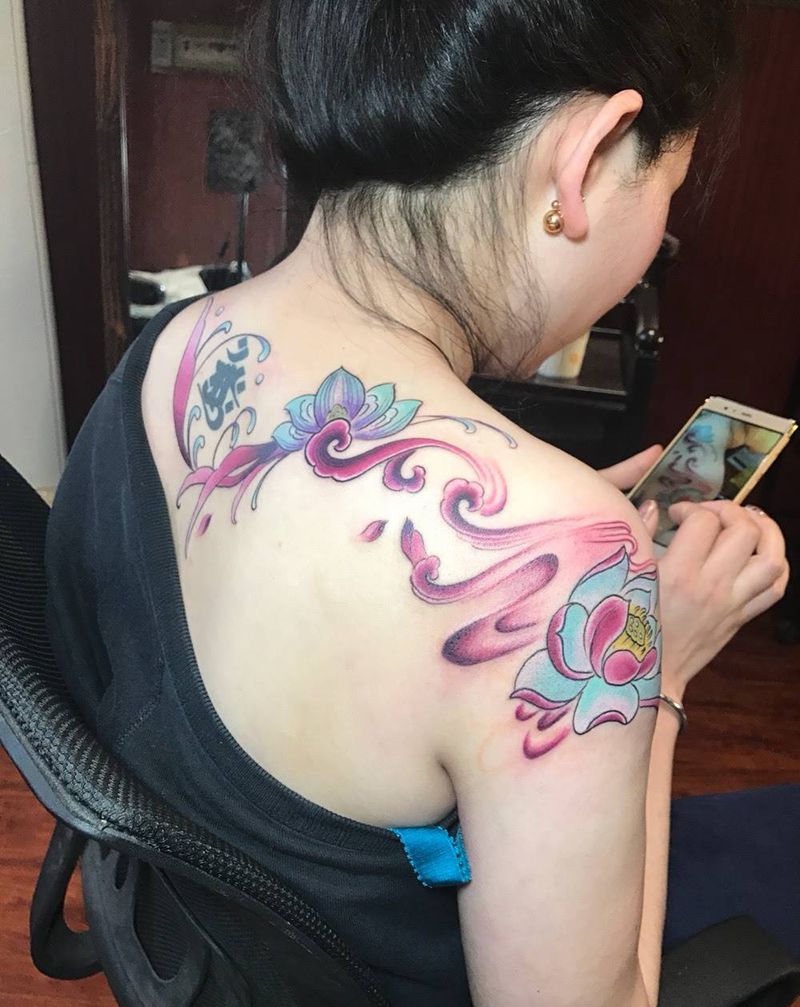 • 女性大花胸纹身_43张霸气漂亮的女性大花胸纹身图案作品