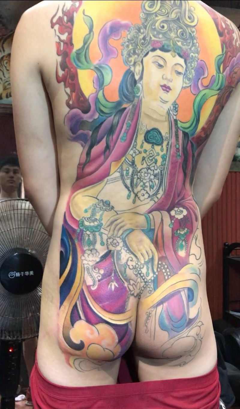 当前位置: 首页 >山东省聊城市纹身店-皇朝刺青旗舰店纹身图案>满背菩萨纹身图片