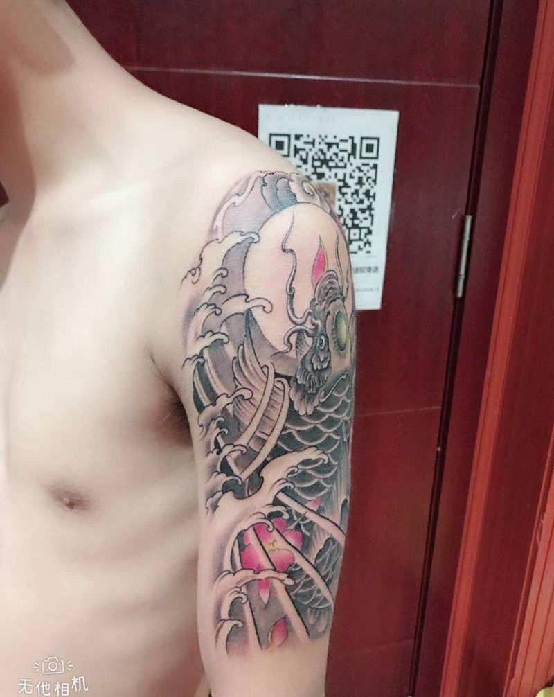 当前位置: 首页 >山东省聊城市纹身店-皇朝刺青旗舰店纹身图案>大臂锦鲤纹身图片