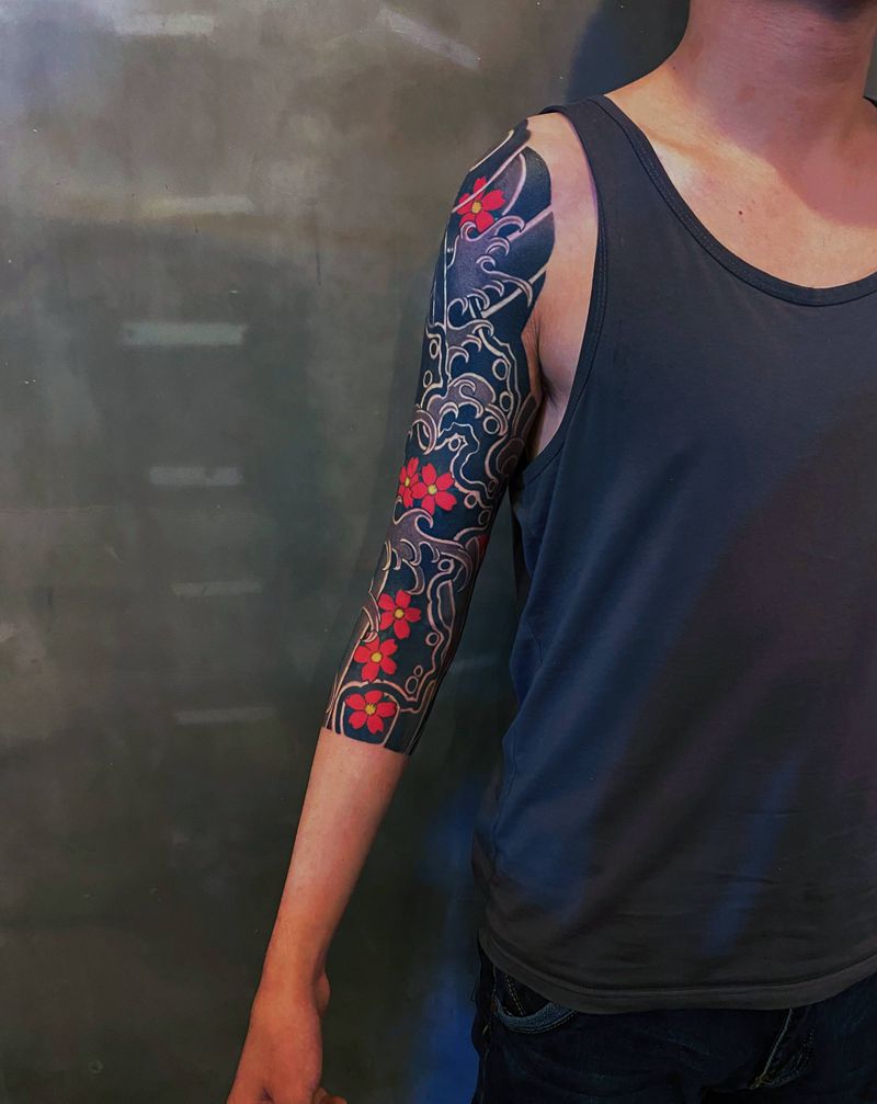 当前位置: 首页 >山东省聊城市纹身店-良刺青工作室纹身图案>七分袖纹身图片_手臂老传统纹身图案