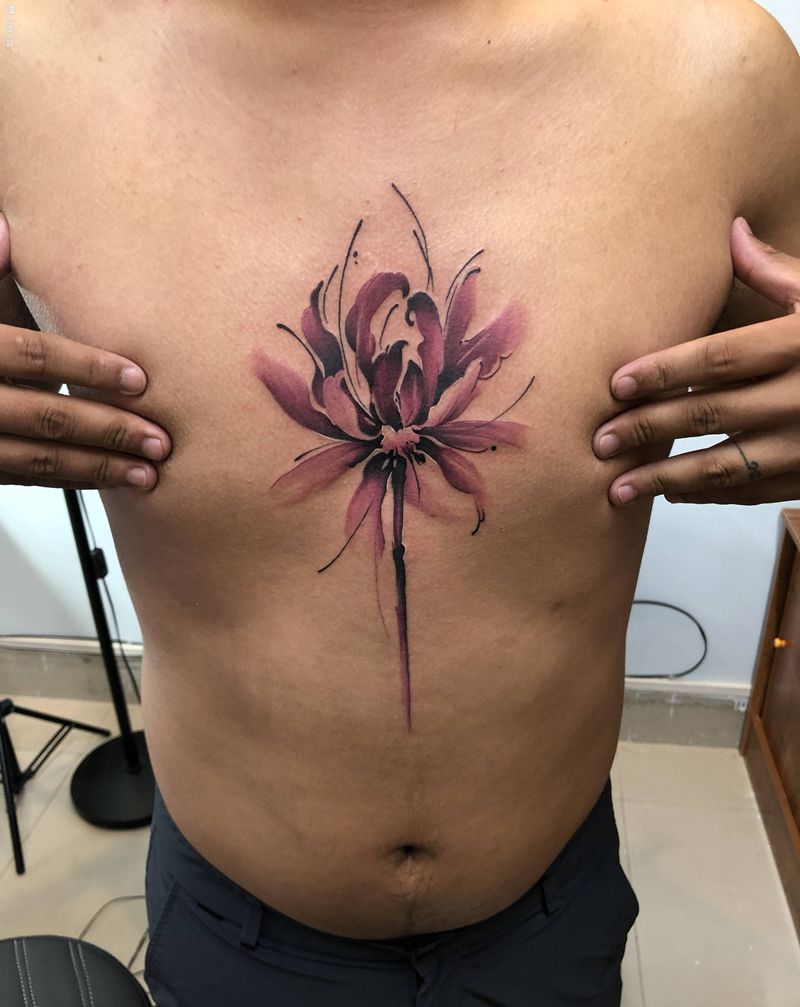 当前位置: 首页 >山东省聊城市纹身店-良刺青工作室纹身图案>彼岸花纹身图片_胸部纹身图案