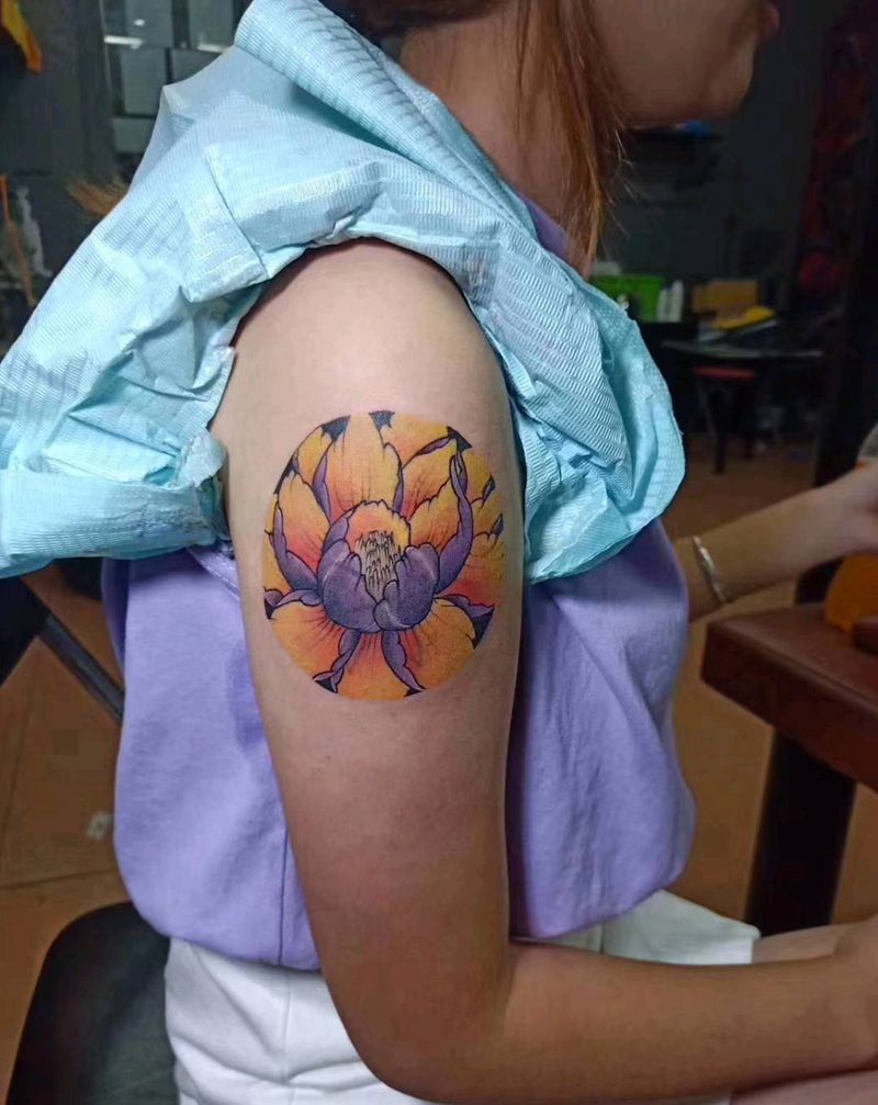 当前位置: 首页 >山东省聊城市纹身店-良刺青工作室纹身图案>花纹身图片_肩部手臂纹身图案