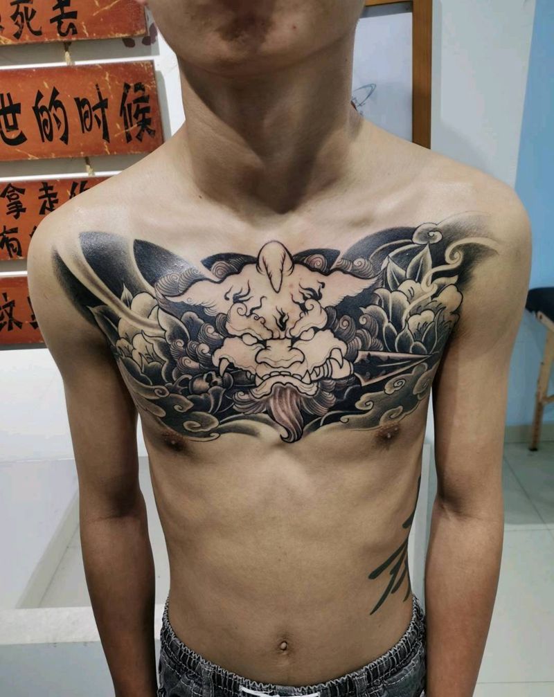 唐狮纹身图片_胸部纹身图案