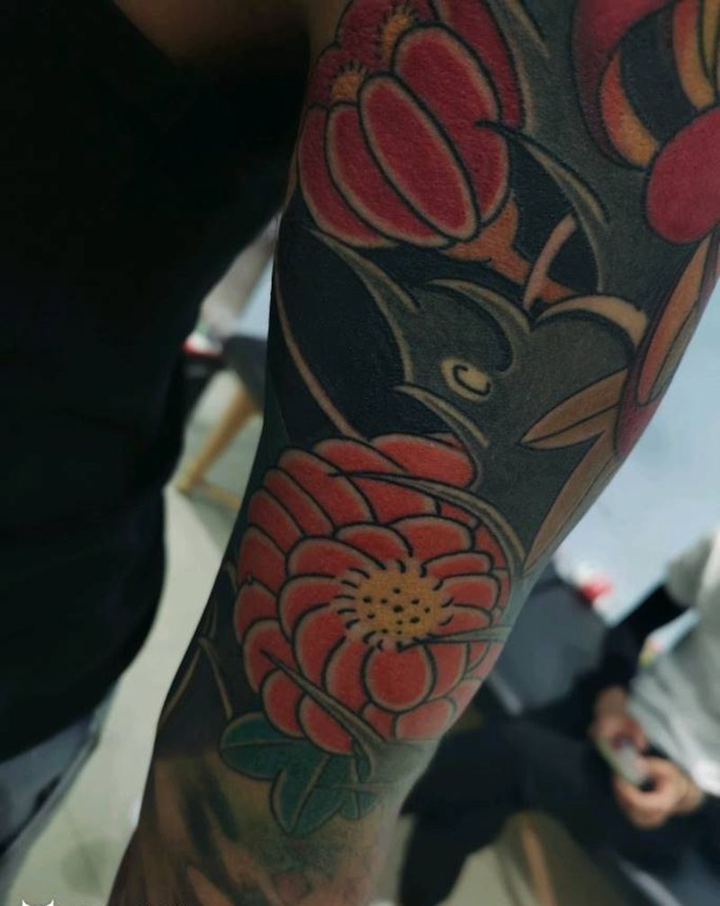 当前位置: 首页 >山东省聊城市纹身店-良刺青工作室纹身图案>菊纹身图片_手臂纹身图案