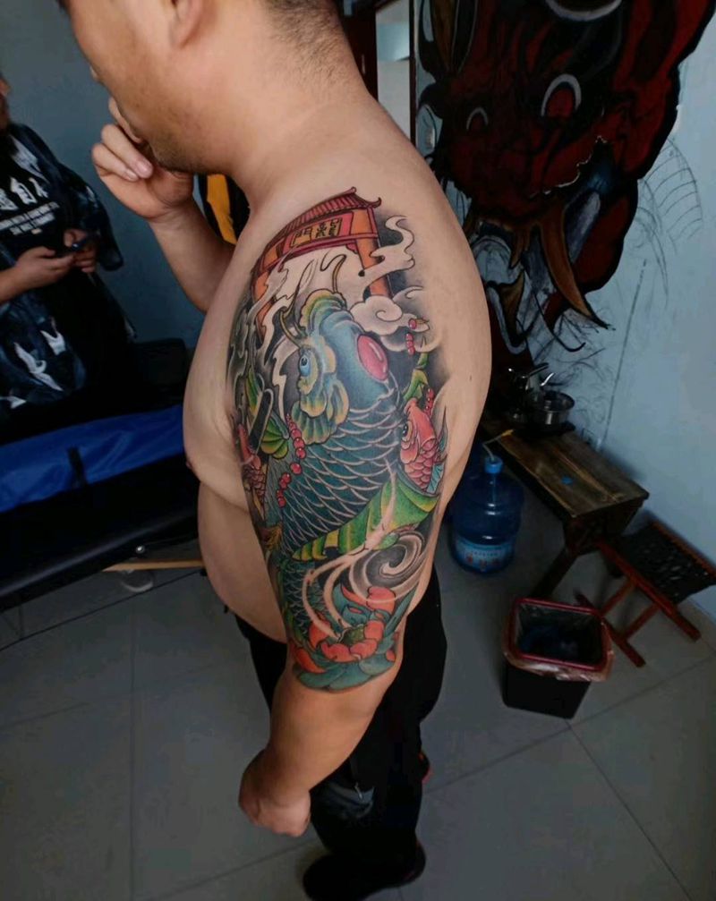 当前位置: 首页 >山东省聊城市纹身店-良刺青工作室纹身图案>鲤鱼跃龙门纹身图片_手臂纹身图案