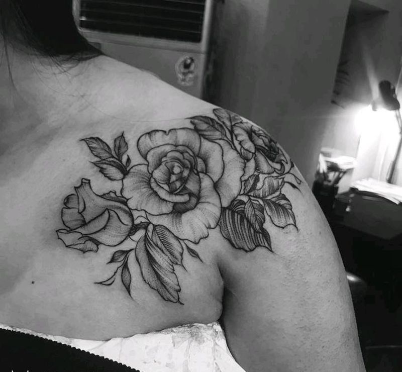• 女性大花胸纹身_43张霸气漂亮的女性大花胸纹身图案作品