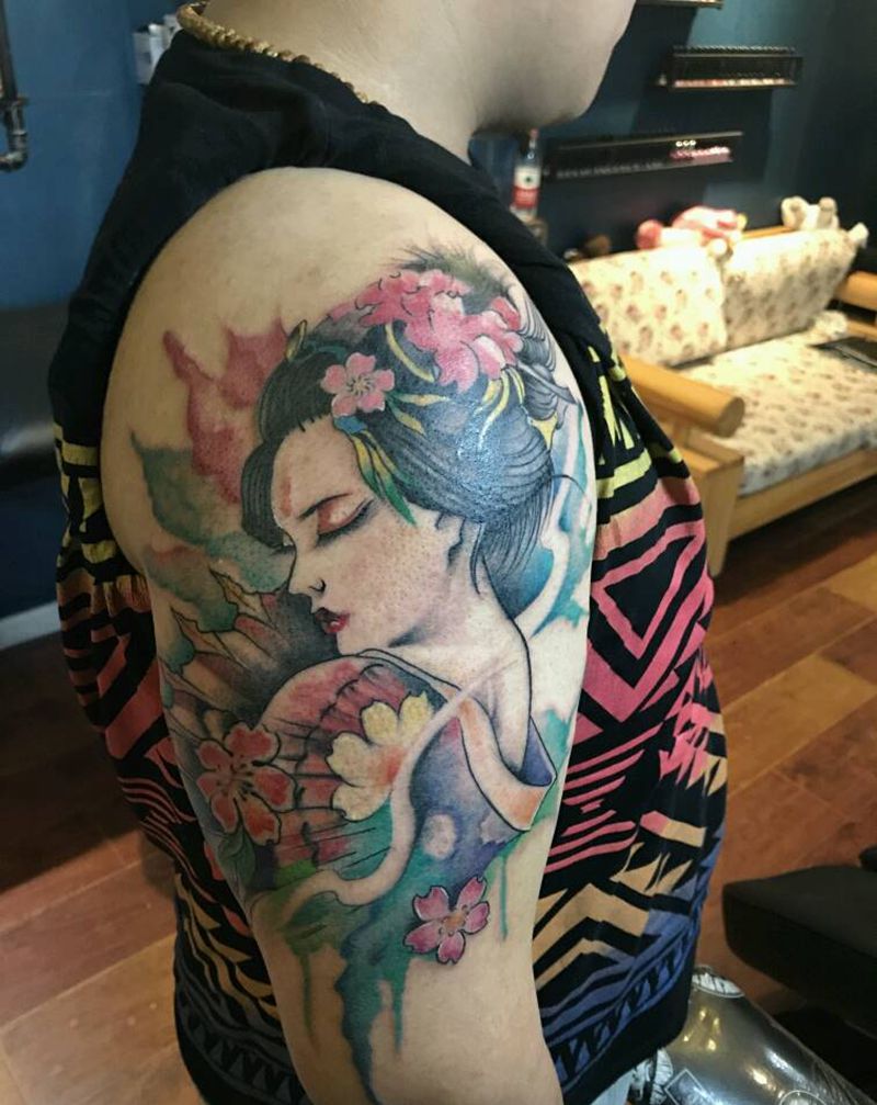 当前位置: 首页 >山东省德州市纹身店-一帆纹身工作室纹身图案>超大个儿的艺妓(= ̄ ρ ̄=)纹身图片
