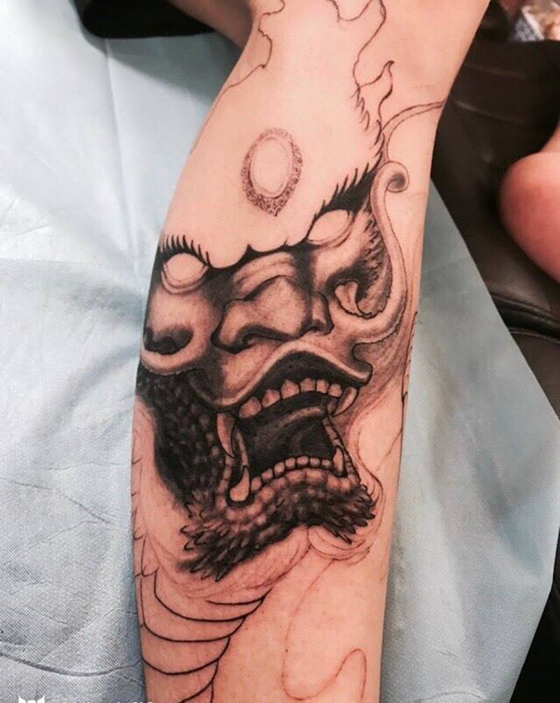 • T网红王老大花腿龙纹身图片_腿部新传统纹身图案