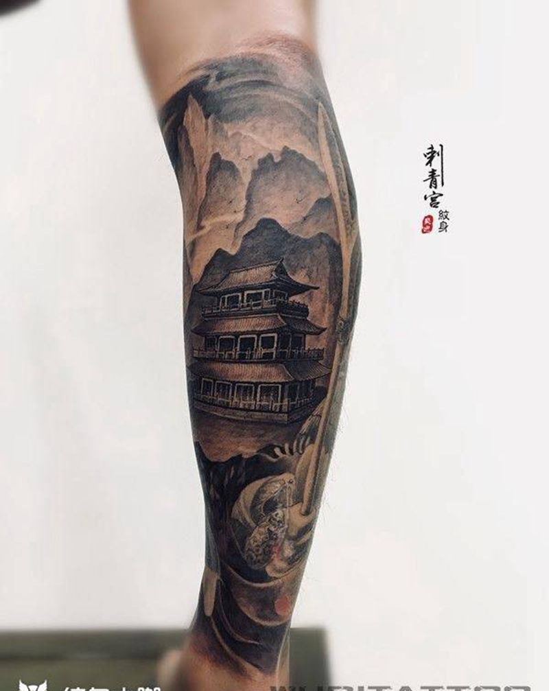 • T网红王老大花腿龙纹身图片_腿部新传统纹身图案