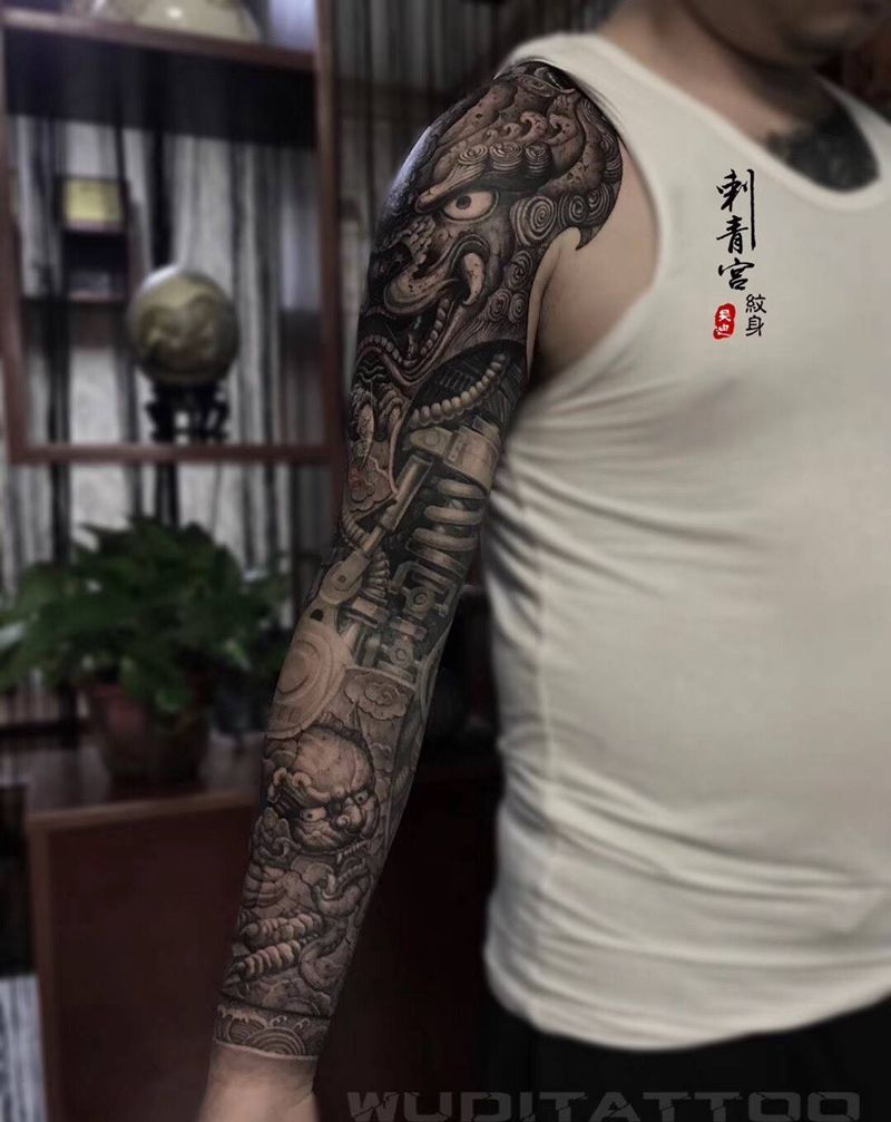 当前位置: 首页 >山东省菏泽市纹身店-刺青宫吴迪纹身纹身图案>富贵双狮机械臂纹身图片
