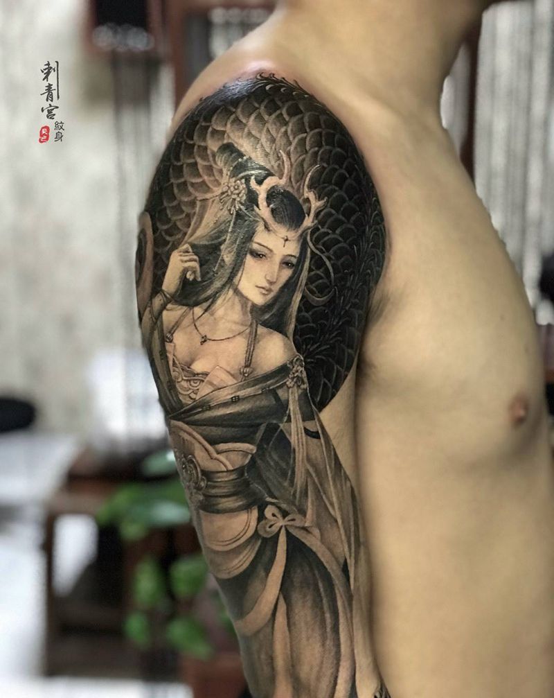 当前位置: 首页 >山东省菏泽市纹身店-刺青宫吴迪纹身纹身图案>龙女纹身图片_手臂新传统纹身图案