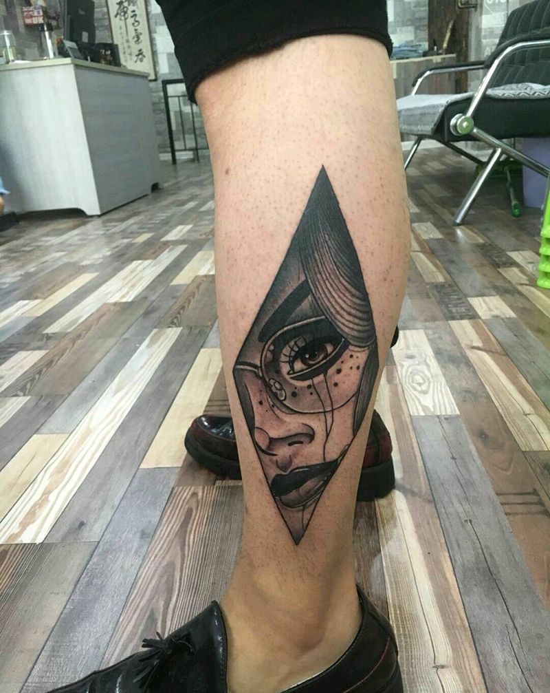 • T包小腿吹火男+阿多福纹身图片_腿部老传统新传统吹火男阿