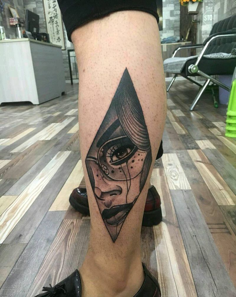 • T包小腿吹火男+阿多福纹身图片_腿部老传统新传统吹火男阿