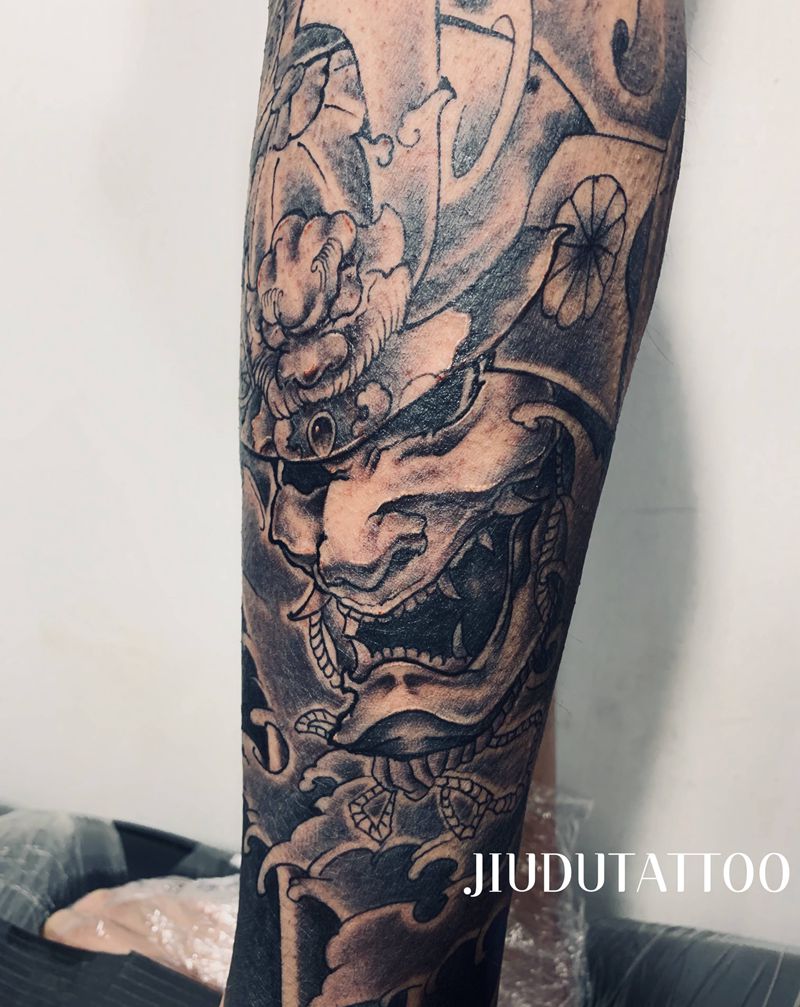 鬼武士纹身图片_腿部新传统老传统纹身图案
