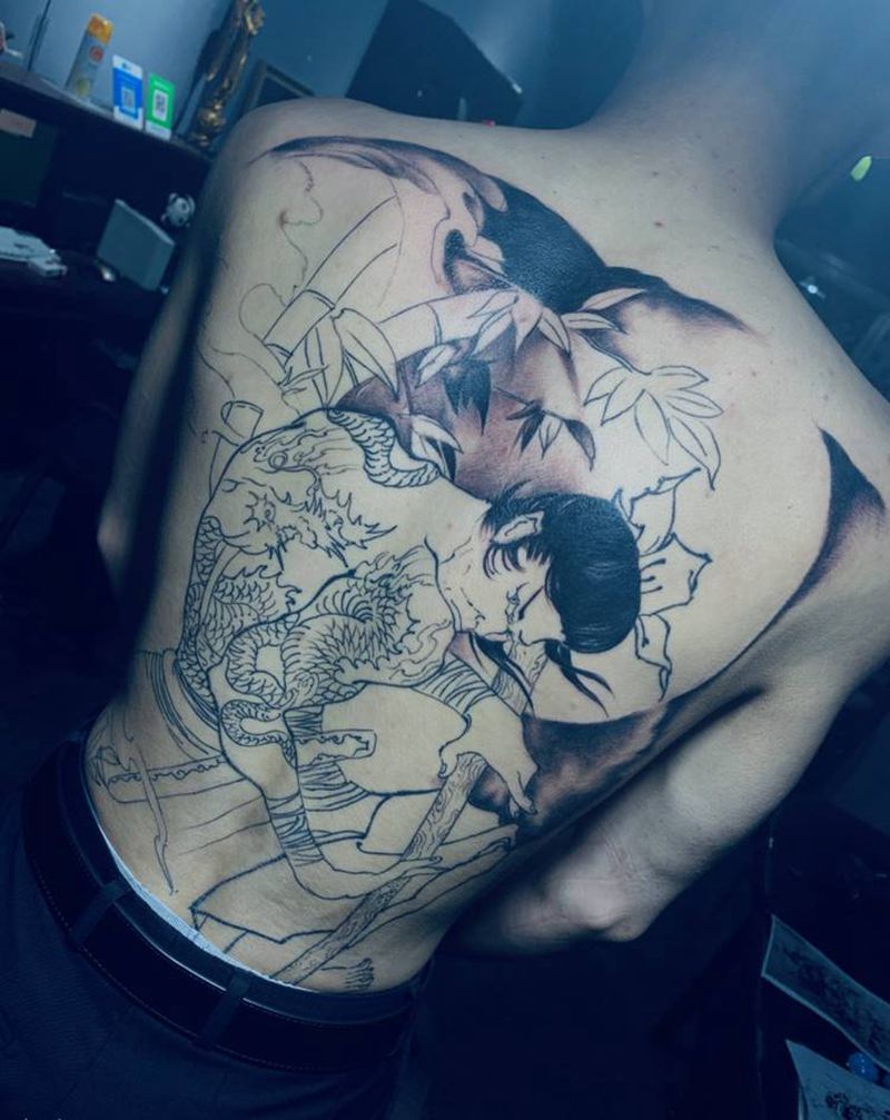 • 黑灰满背纹身图案