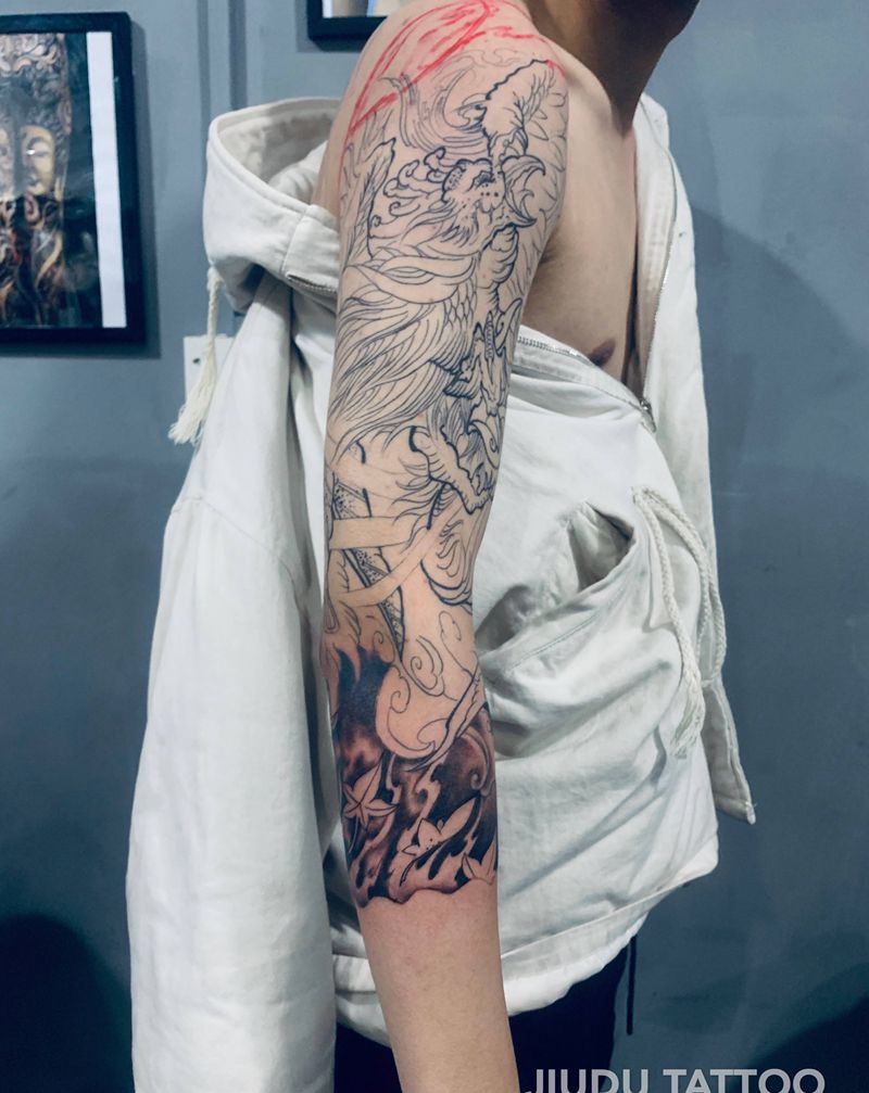 当前位置: 首页 >山东省聊城市纹身店-九度刺青纹身图案>凤凰「未完」纹身图片_手臂新传统纹身图案