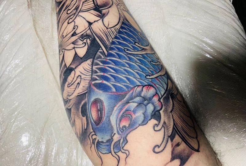 • T网红王老大花腿龙纹身图片_腿部新传统纹身图案